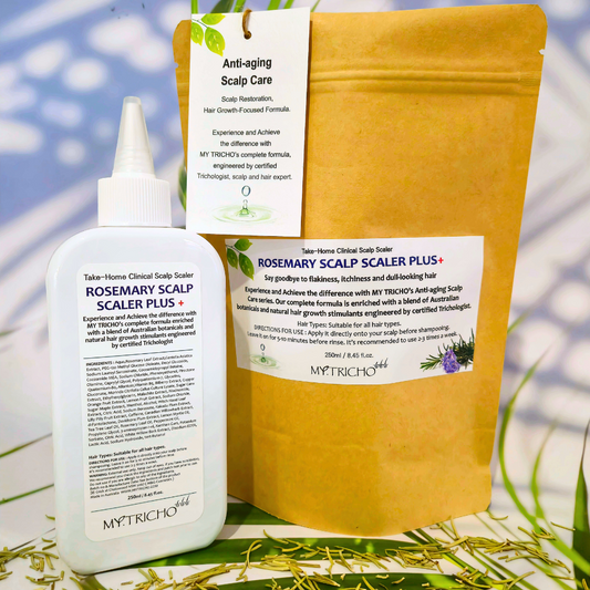 Take-Home Rosemary Scalp Scaler Plus+ Shampoo, powered by antioxidant-rich Australian botanicals, vitamins and minerals. Experience the difference with our complete Trichology formula & indulge in the most refreshing sensation.